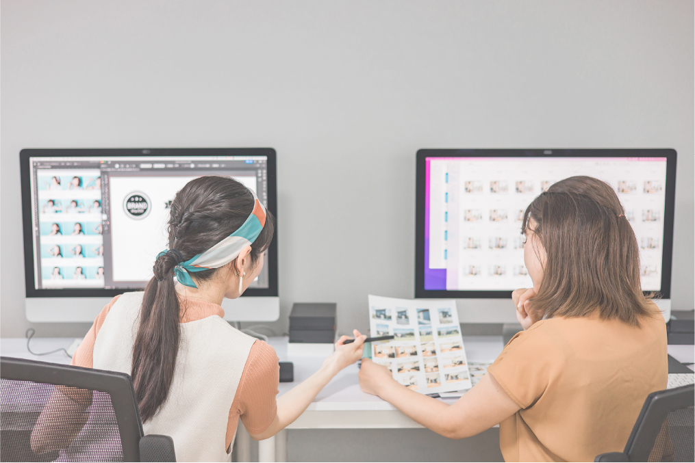 女性スタッフを中心に、丁寧なヒアリングで課題を正確に捉え心を動かし成果へとつなげるデザインをご提案いたします。